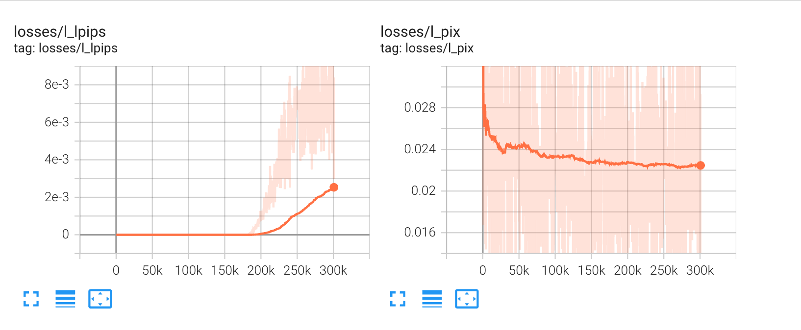 在 180k 开始逐步增加 LPIPs 的权重,在 270k 的时候权重达到峰值 0.03, 随后保持该权重
